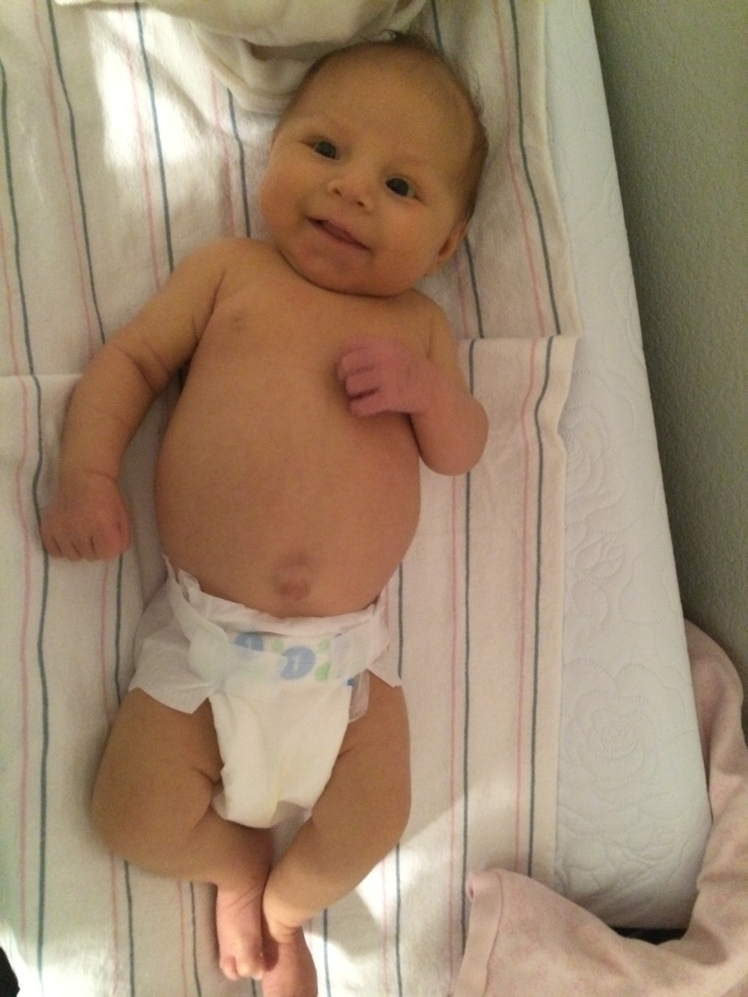 The next day we were scheduled for yet another set of chest X-rays (2nd set in about a month) and abdominal ultrasound (the 4th in her short 5 month life). These scans were simply in preparation for our evaluation at UCLA but I would come to find out why later that day. Now Norah is a strong little girl, no doubt, but HATES being “messed with” very much. It’s why bath time and diaper changes aren’t much fun, why it takes 3 people to hold her during blood draws, and why ultrasounds take so long to complete – she screams and cries almost the whole time, every time. Anyway, it took about 15 minutes until the tech stopped and asked the doctor reading the scans if I could feed Norah to calm her down, even though she was supposed to be fasting for 3 hrs prior to the ultrasound & x-rays. After some convincing and more screaming, I was allowed to nurse her and she calmed down almost immediately.